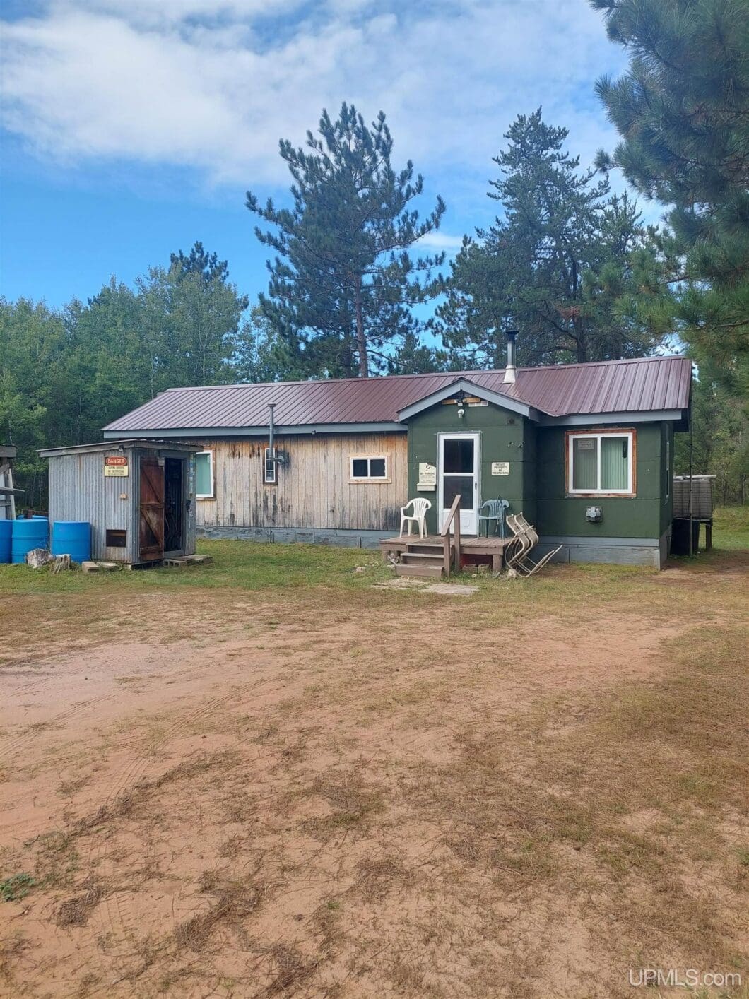 Great camp not far off of 581 in West Ishpeming. The camp has great hunting potential. Has plenty of open space in the front and great wood access to the two deer blinds that sit on the property. Two sides of the property are also connected to state land. There is an area that has also been used as a shooting range marked off at 50 yards and 100 yards. Camp has a metal roof and places for storing four wheelers and other things of that nature. Camp has a point and an inside full bathroom. Plus, an outhouse that has a propane hook up to it. Would make a great place for anyone who loves the U.P. outdoors.